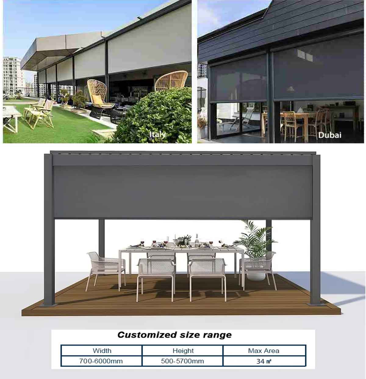 ✔️ Customizable Sizing – Tailored to fit pergolas up to 20m² (standard) or larger