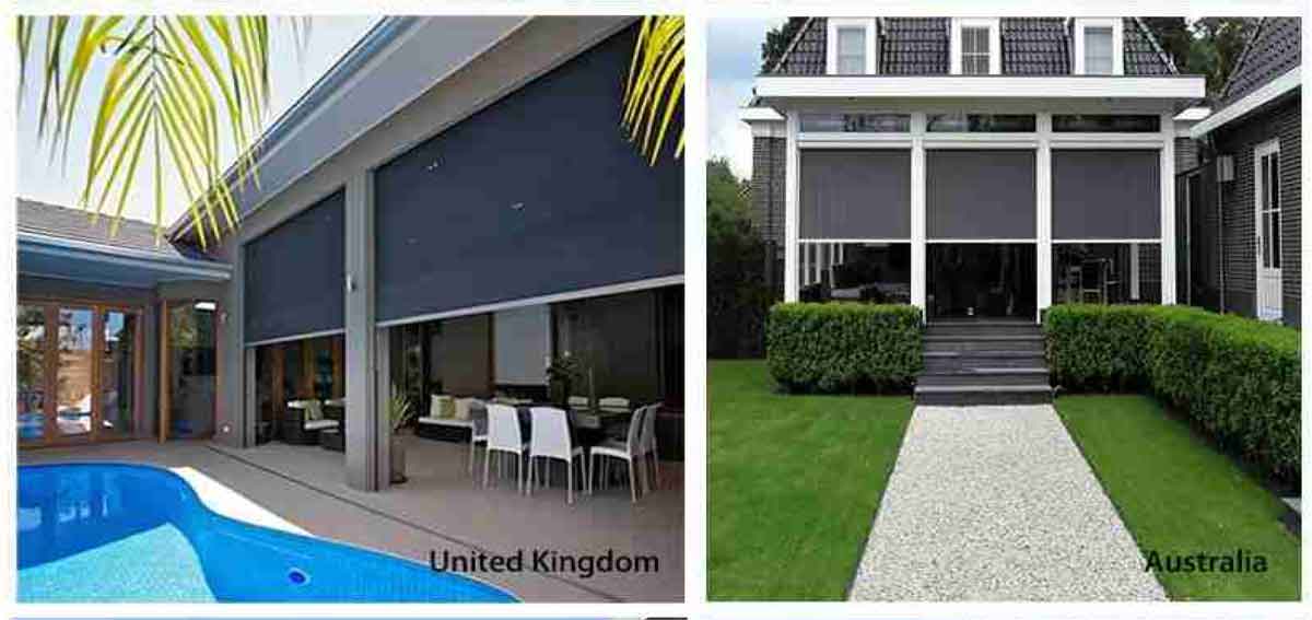 Motorized Wind Resistant Sunshade Zip Screen use special outdoor fabric, provide super windproof, waterproof, fire resistant, ventilation and Blockout Roller Blinds are there to stop the sun in its tracks .Put them in your bedroom for a perfect night’s sleep or anywhere else where the sun gets too much. If you need something snazzy for your kitchen or bathroom, try our waterproof collection of PVC blinds. They can withstand the harshest environments with ease at the same time as brightening up your day. If it’s a view you need our Sunscreens, voiles and Enjoy Vision blinds will protect your privacy and let you see outside. Manual Cord control or Electric remote control options.