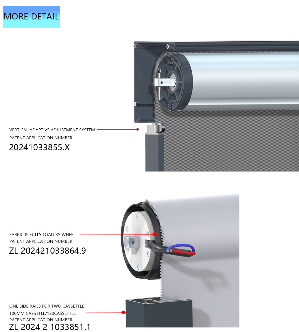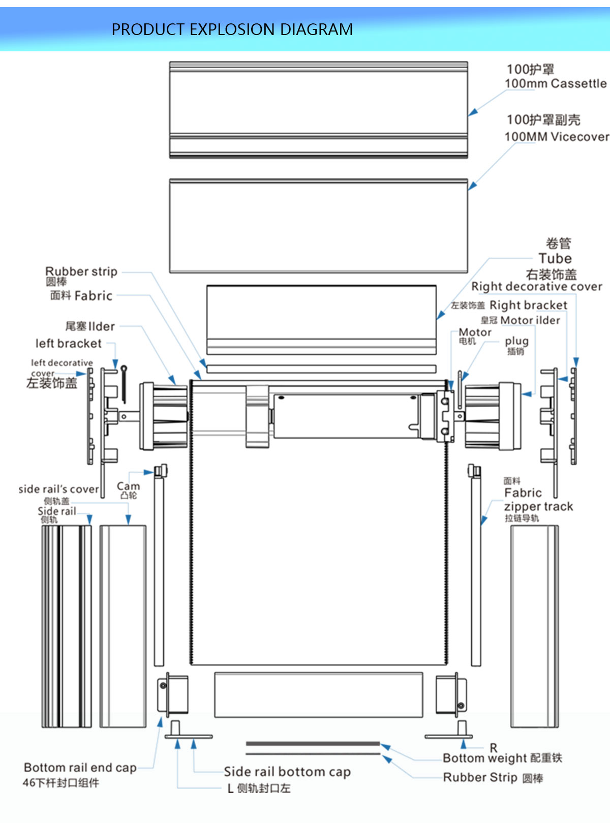 | Accessories | Aluminum Alloy tube, clutch, top cover, bottom rail, side track, zip tracksystem |